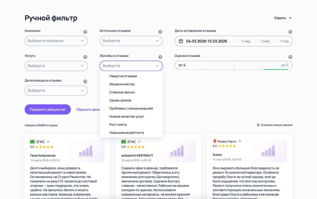 Еженедельное обновление базы отзывов. Наша система автоматически находит и помечает отзывы, которые могут быть накручены.